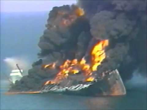 Iranian Frigate Sahand Burning and Sinking following US Attack in 1988