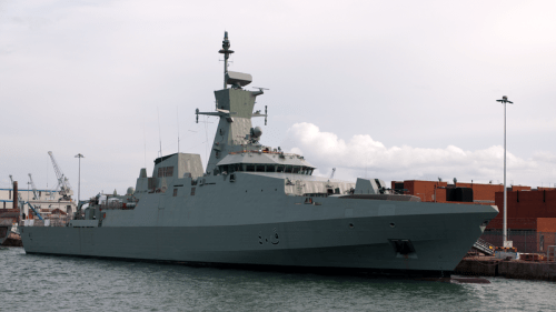 Oman (Royal Navy of Oman)  Oman has 5 very modern Corvettes. 2 Qahir Class which are British built Vosper Mark 9 and three new ships of the BAE Systems Khareef Class are entering service. These ships displace 2660 tons and are more modern, stealthy and heavily armed than most ships their size in the Gulf. The Omanis also have 8 modern patrol ships or craft and several amphibious ships and a number of smaller craft and auxiliaries.