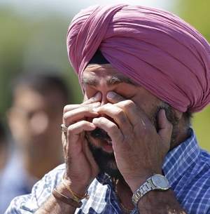 A Sikh man Cries outside the Temple in Oak Creek Wisconsin