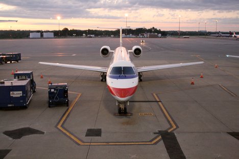 Today I flew out of Houston on the American Airlines subsidiary American Eagle. To make it to the airport I had to catch a cab from the hotel and build in enough time for Houston morning rush hour traffic, so I was on the road by 0720. I had, the operative word had a flight that was to depart at 1020 and be in Dallas by about 1130. My connecting flight was scheduled to depart at 1335. That would have been great. Two hours to make connections right? But no, the scheduled aircraft had a mechanical problem and the replacement did not arrive in Houston until 1145. By the time I took off it was 1225 by the time I landed it was too late. I missed my flight by about 5 minutes. It was pushing away from the gate when I got off of the Sky Link train. I was able to get a picture of it as it left.