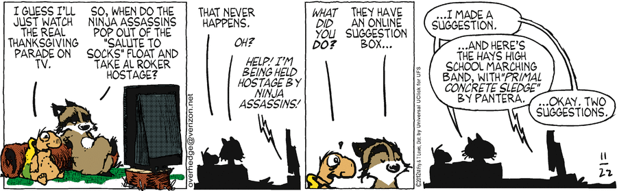 I think it would be more fun since we are becoming a police state if we mounted surveillance cameras and Hellfire missiles on the floats. Could you see the surprise in the faces of terrorists and even law abiding citizens when they realized that Snoopy, Garfield and the Cat in the Hat were targeting them. If we have to live in a police state I think it should it might as well be fun.