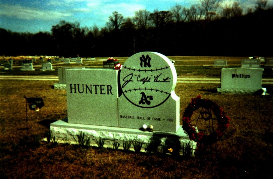 To most baseball fans Hunter is remembered as a great player. However, to his friends and neighbors in Hertford he was much more. He was a mentor, friend and helper. His unexpected death in 1999 shook the community and the baseball world, especially his former teammates, a number of whom quickly changed their schedules to be in Hertford to be with Jimmy’s family.   Former teammates present included Lou Piniella, who was then managing the Seattle Mariners, who missed his team’s game in Baltimore to attend the service at Cedarwood Cemetery. Other former teammates who attended the funeral included former A’s Joe Rudi, Vida Blue, Gene Tenace and “Blue Moon” Odom, and Yankees Ron Guidry, Jim Spencer and Reggie Jackson, who took a cab from Norfolk to get to the funeral on time. Attended by over 1000 people the funeral was the largest in the history of Hertford.