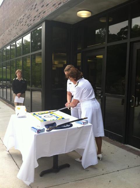 Captain Nancy Pearson cuts the Birthday Cake at Naval Hospital Camp LeJeune