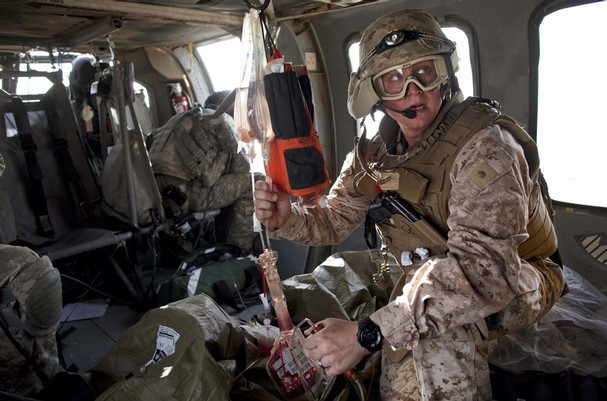 LCDR Eric Gryn in Afghanistan tending a wounded Afghan Soldier on a Medivac flight in 2011, he serves at Naval Hospital Camp LeJeune