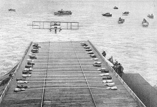 It is hard to believe that Naval Aviation traces its heritage back to this humble beginning. However the next time you see whether in person or on television aircraft taking off and landing from a modern super carrier remember the brave soul named Eugene Ely who 103 years ago gunned his frail aircraft down that short ramp aboard the Birmingham. To Ely and all the men and women who would follow him as Naval Aviators.