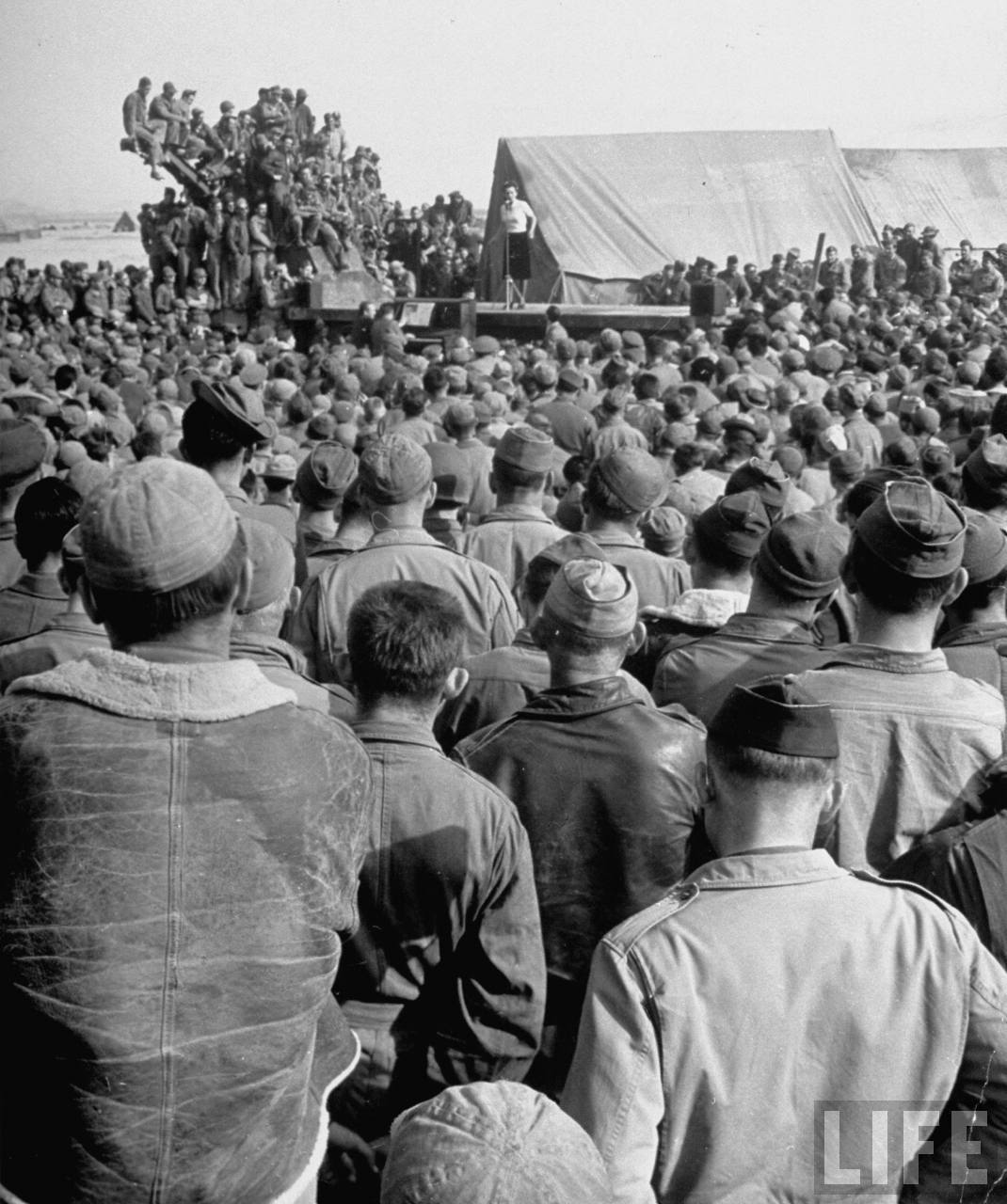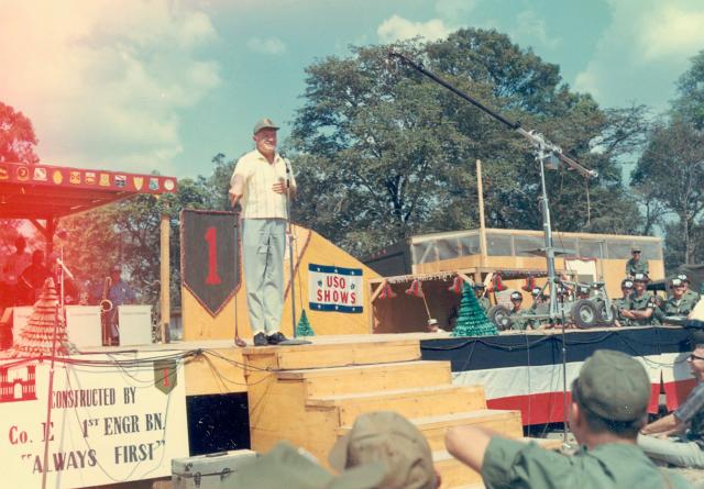 During the war the USO sponsored many entertainers who went to combat zones to perform Christmas shows, among them was Bob Hope.