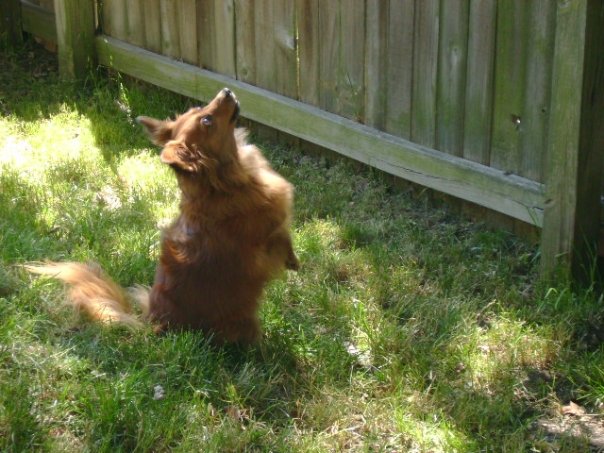 I lived in an apartment under a beach house in Emerald Isle. Outside my door there were deer, squirrels, birds, and did I say deer? I lived about three-tenths of a mile from the beach and every day she and I would take a walk, she would chase deer and then were would hit the beach. In Virginia we have a small back yard and though there are squirrels and birds it could not compete with Emerald Isle.