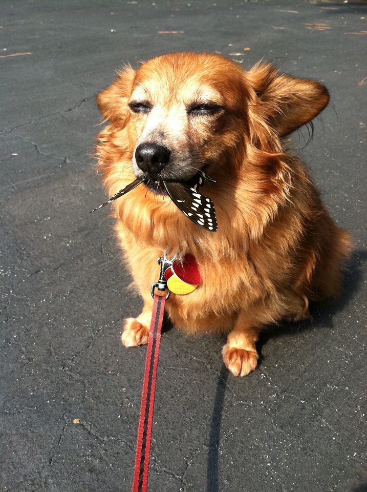 Molly went everywhere with me and loved the rides in the car. She also loved the visits to the pet store which we call the “cookie store” and the walks on the beach. Just before I returned to Virginia in 2013 Molly went blind, just before this she had caught a butterfly in mid-air. She held onto it for five minutes before releasing it unharmed, except for the PTSD that the poor insect must have had.