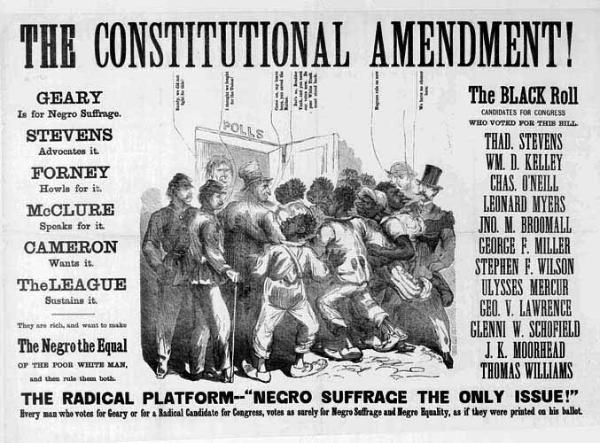 They also ratified the Thirteenth and the Fourteenth Amendments, but these governments, composed of Southern Unionists, Northern Republicans and newly freed blacks were “elicited scorn from the former Confederates and from the South’s political class in general.” [6] Seen as an alien presence by most Southerners the Republican governments in the South faced political and was as violent opposition.