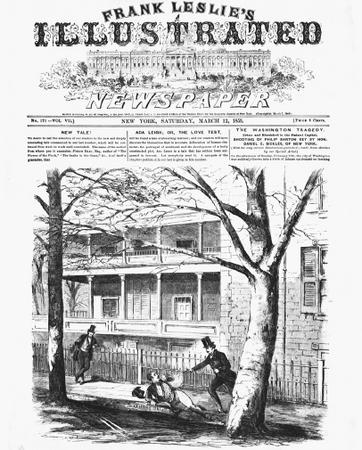 Whether the liaison with Maria Bagioli occurred is a matter of innuendo and conjecture, but it would not be out of character for Sickles, who, to put it mildly, had a wild proclivity for the opposite sex. As a young man he frequented brothels, and as his social and political status increased, he moved from the brothels frequented by the middle class to those which catered to the more socially well to do. One of his affairs was with the a prostitute named Fanny White, a woman who was smart, pretty, and upwardly mobile who ran her own bordello. His affair with Fanny was well publicized, but did not prevent him from being elected to the state legislature in 1847. She and Sickles would continue their relationship for years with her asking nothing more than expensive gifts, and there are inklings that Fanny help to fund Sickles’ early political campaigns. There is also speculation that in 1854 following his marriage, that Fanny spent time with him in London while he was working with James Buchanan and that that he “may have brought Fanny to one of the Queens’s receptions and introducing the prostitute to Her Majesty.” [17] But Fanny eventually moved on to a man older and richer than Sickles. Eventually she retired from her business and married another New York lawyer but died of complications of tuberculosis and possibly syphilis in 1860. Her property at the time of her death was conservatively “estimated at $50,000 to $100,000”[18] a considerable fortune for a woman of her day and age.