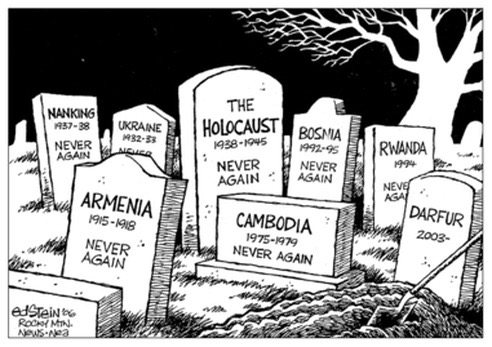 The sad truth is that Hitler is not alone. Such beliefs and actions are all too common. In 1830s to the 1850s in the United States it was Irish and German Catholics; in the ante-bellum and the Jim Crow South it was African Americans who were said to be an inferior race; in the 1860s to the early 1900s on the west coast it was the Chinese. After Pearl Harbor, the Japanese who we put in internment camps. Let us not forget the protracted campaign to exterminate the Native Americans, something that Rush Limbaugh mocked in 2009 saying, “Holocaust? Ninety million Indians? Only four million left? They all have casinos — what’s to complain about?” Those are just European and American examples. One can see the same language and action in Rwanda, the Sudan, the Middle East, the Japanese campaign in China, the Soviet starvation and massacres of Poles and Ukrainians during the 1930s; and the list can go on and on.