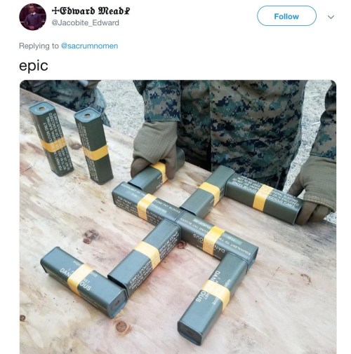 I actually encountered and helped to “out” one of these men, a young Marine to the Marine Corps on Twitter this evening. His posts were racist, religiously exclusivist, violent, and praised the actions of traditionalist European Catholics who signed aboard the Nazi cause, including the Belgian Fascist Leon Dagrelle.