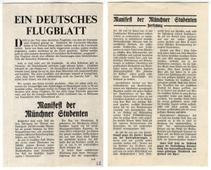Soldiers at the front are regimented like schoolboys by student leaders and trainees for the post of Gauleiter, and the lewd jokes of the Gauleiters insult the honor of the women students. German women students at the university in Munich have given a dignified reply to the besmirching of their honor, and German students have defended the women in the universities and have stood firm…. That is a beginning of the struggle for our free self-determination – without which intellectual and spiritual values cannot be created. We thank the brave comrades, both men and women, who have set us brilliant examples.