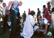 When I got back the headquarters we went into a meeting, and the base went on lock down mode. The gates were closed and additional checkpoints, and roadblocks established on base. Marines in full battle-rattle patrolled the perimeter and along the waterfront. I did not leave the base until the night of the 15th when things began to settle down and we all went into contingency planning mode for any military response to the attacks.
