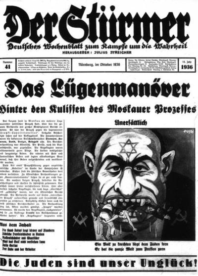 The Indictment itself recites many evidences of the anti-Semitic persecutions. The defendant Streicher led the Nazis in anti-Semitic bitterness and extremism. In an article appearing in Der Sturmer on 19th March, he complained that Christian teachings have stood in the way of “racial solution of the Jewish question in Europe,” and quoted enthusiastically as the Twentieth Century solution the Fuehrer’s proclamation Of 24th February, 1943, that “the Jew will be exterminated.” And on 4th November, 1943, Streicher declared in Der Sturmer that the Jews “have disappeared from Europe and that the Jewish ‘Reservoir of the East’ from which the Jewish plague has for centuries beset the people of Europe, has ceased to exist.” Streicher now has the effrontery to tell us he is “only a Zionist”; he says he only wants to return the Jews to Palestine.