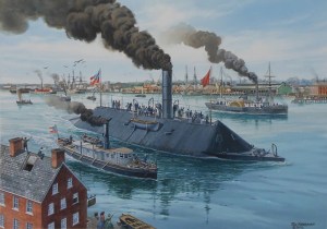 It took place just a few miles from two of my last three active duty assignments. If it happened today I would certainly been able to watch it from beach any of the beaches were I worked at Joint Base Little Creek – Fort Story. I could have watched Virginia steam from the Elizabeth River to do battle from my office at the Joint Forces Staff College, or I could have watched Virginia’s transformation from the salvaged wreck of the steam frigate USS Merrimac into the ironclad behemoth she became in Dry Dock Number One at Naval Shipyard Norfolk in Portsmouth, my last assignment on active duty.