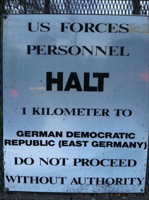 Back in 1986 Europe was divided by the Iron Curtain. Then Germany was two countries, the Federal Republic of Germany and the German Democratic Republic. I made a number of trips to the inter-German border as part of my duties to know the terrain that we would fight on should war break out and in November 1986 Judy and I would make the trip via the Helmstedt Corridor through East Germany to Berlin. I was reminded about the division of Europe, particularly Germany by two mementos displayed near the front gate of Kelley Barracks. One was a piece of the Berlin Wall, the other a sign warning people of their proximity to the inter-German border.