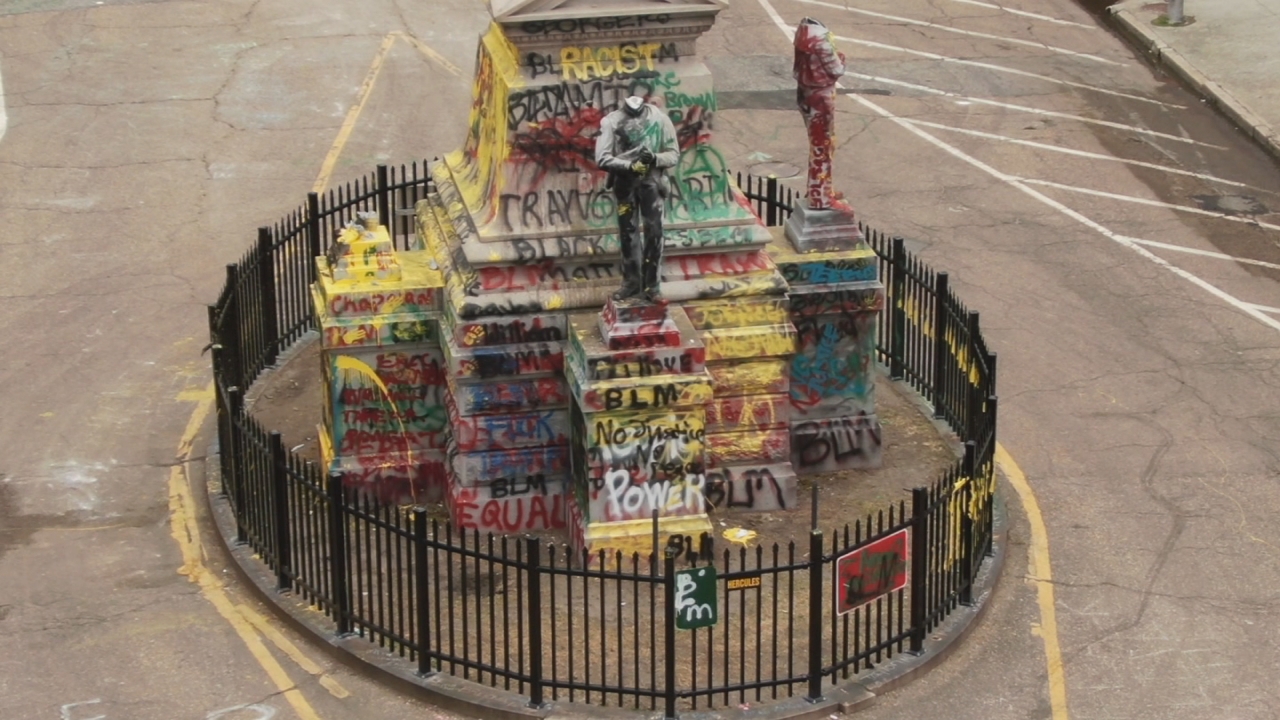 The Confederate Monument in Portsmouth, Virginia in 2017 and on June 11th 2020