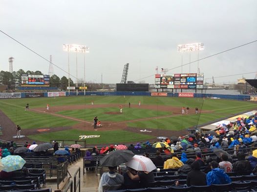 No I can’t say that the weather was that great, it was in the high 60s with rain showers which were heavy at times. However, like the swallows return to Capistrano baseball returned today to Hampton Roads.