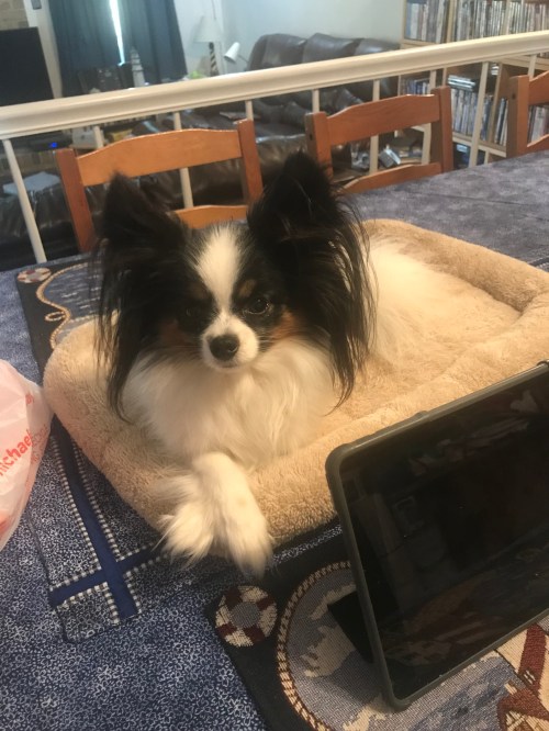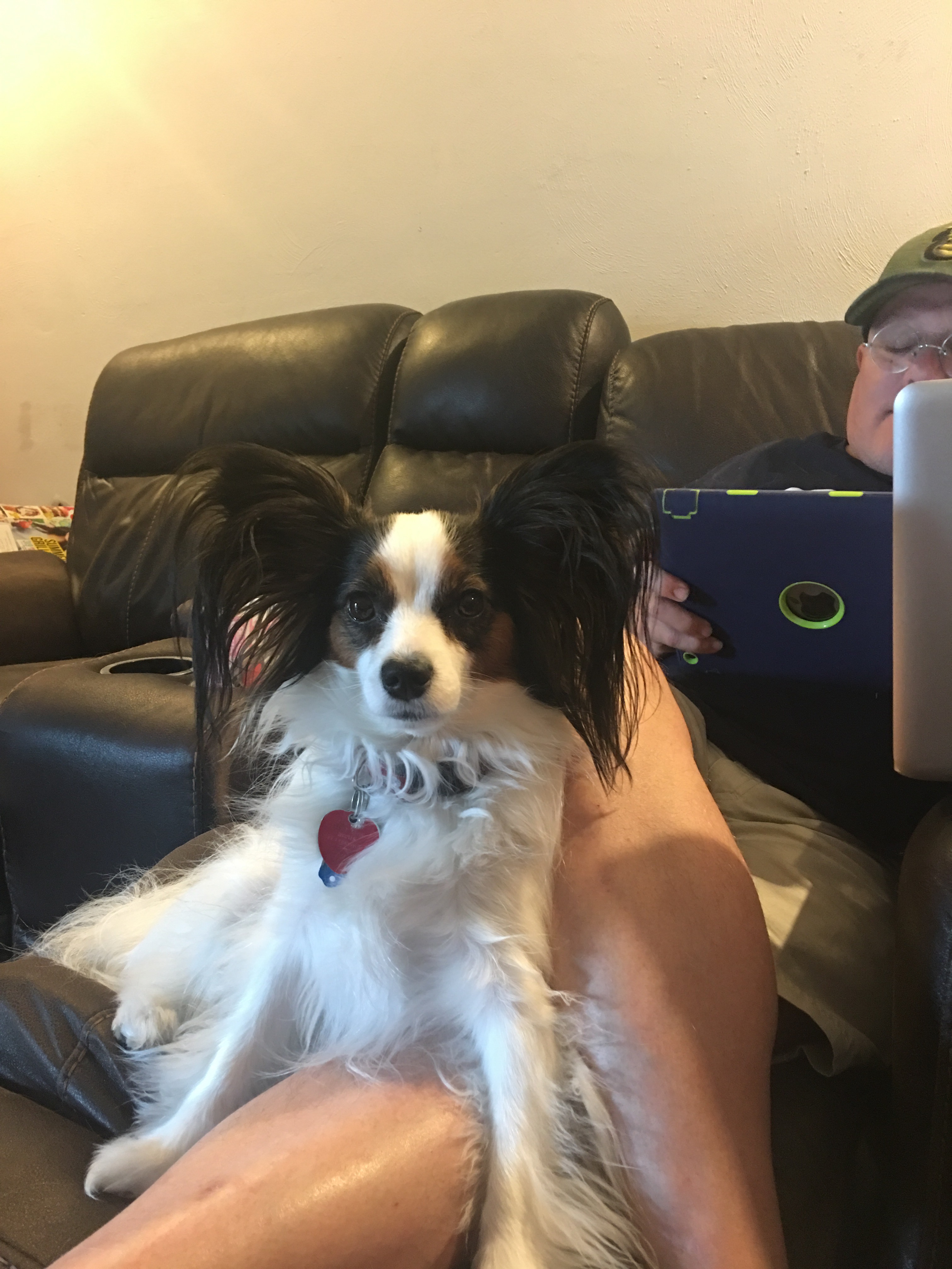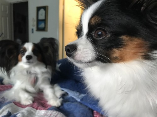 Molly was also responsible for us having Papillons. We came to love Molly’s cheery, happy and funny Papillon side. Now Molly did have a Dachshund side of her personality as well, but she operated as either one or the other, so we never knew if we were going to get the “happy Pappy” of the serious Dachshund. But Molly’s Papillon side caused me to get Judy a Papillon just about a month after Molly a abandoned Judy to move to North Carolina with me. This Papillon is Minnie, or her full name “Minnie Scule.” In February we got Minnie a pappy-puppy named Izzy, or “Izzy Bella.” They are a joy. They are not Molly and they, even though both are full blooded Papillons have wildly different personalities. They are now best buddies and partners in crime.