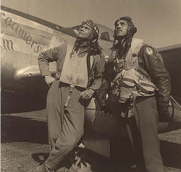 Colonel Benjamin O Davis Jr (left) with one of his Tuskegee Airmen
