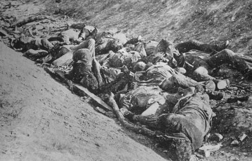 “The sights and smells that assailed us were simply indescribable-corpses swollen to twice their size, asunder with the pressure of gases and vapors…The odors were nauseating, and so deadly that in a short time we all sickened and were lying with our mouths close to the ground, most of us vomiting profusely.” [21]