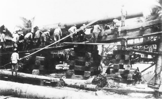 Japanese Troops Emplacing 8″ Vickers Gun