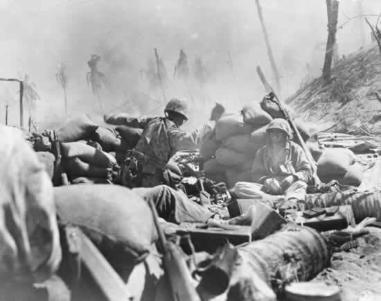The now desperate Japanese defenders launched a series of Banzai charges which beginning about 1930 hours and ending about 0400 when the Marines annihilated the last attack with the assistance of artillery.[cv] The attack, which could have succeeded the first or early the second day, now aided the Marines by killing troops that might have been used to exact a higher price in Marine lives for the tail of the island.[cvi]