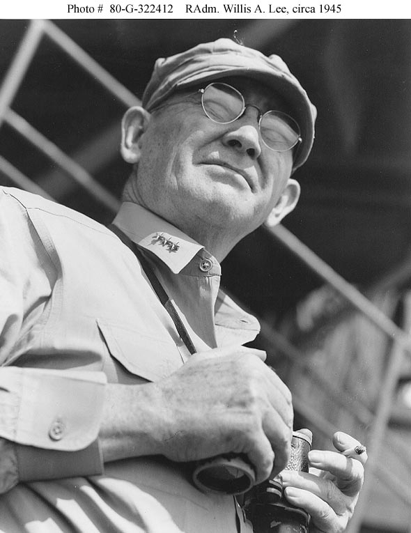 However the communications officer on Halsey’s flagship only removed the first section leaving “Where is Third Fleet, the world wonders.” Halsey was flabbergasted and though the battleships of Task Force 34 were almost in range of the Japanese force he sent them south to relieve Kinkaid’s beleaguered force. However by the time Vice Admiral Willis Lee’s battle line arrived Kurita had withdrawn, losing 3 heavy cruisers sunk, three heavy cruisers and one destroyer heavily damaged.