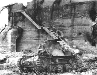Admiral Shibasaki’s HQ and a knocked out light tank