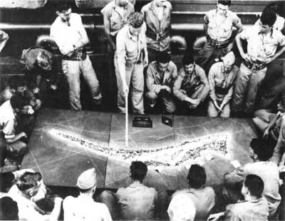 Several factors were considered by Nimitz and his planners considerations in this choice.  Nimitz did not have enough troops to capture all of the vital heavily defended locations in the Marshalls without dividing his forces.[ix] Additionally the Gilbert operation could be supported by land based bombers.[x] A final consideration was the Joint Chief’s decision to allow MacArthur to retain control of 1st Marine Division, which Nimitz had hoped to employ in his operations in the Central Pacific.[xi] The Staff of CINCPAC did a thorough photo reconnaissance of the Gilbert’s, and convinced the Joint Chiefs that Tarawa and Makin needed to be taken to provide air bases for the assault on the Marshalls.  Finally, the order for Galvanic was issued on 20 July 1943 with its execution planned for November 1943.[xii]
