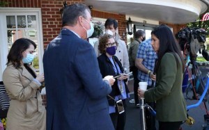 Katie Miller answering Reporters Questions Outside Nursing Home on 7 May