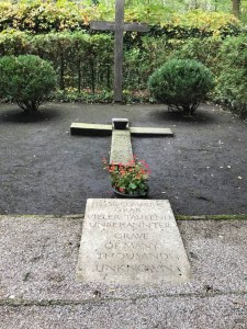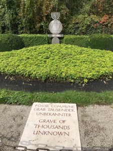 The picture that you see above is the memorial to the Unknown Prisoner at Dachau. The words: “Den Toten zur Ehr, den Lebenden zur Mahnung” [To Honor the Dead, to Warn the Living] are engraved at its base.