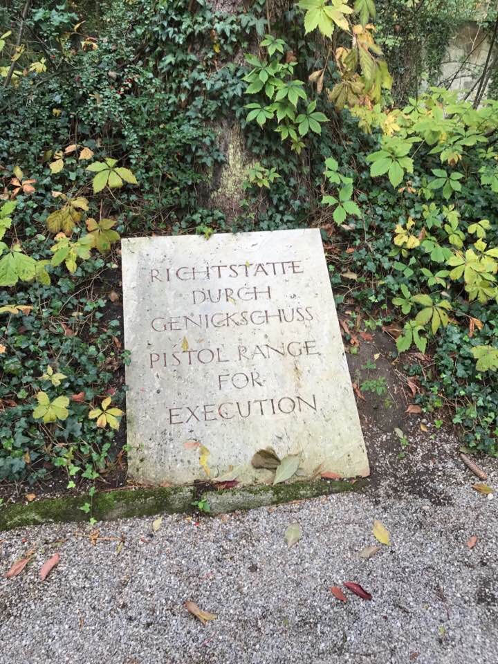 A man who said he was one of the former inmates acted as impresario and showed us first the gallows, where men were hanged for attempting to escape. The drop board was about two feet from the ground, and the cord used was piano wire which had an adjustment so that when the man dropped, his toes would just reach the ground and it would take about fifteen minutes for him to choke to death, since the fall was not sufficient to break his neck. The next two men to die had to kick the board out from under him. It was stated by some of the Germans present that the generals who were executed after the Hitler bomb incident were hanged in this manner.