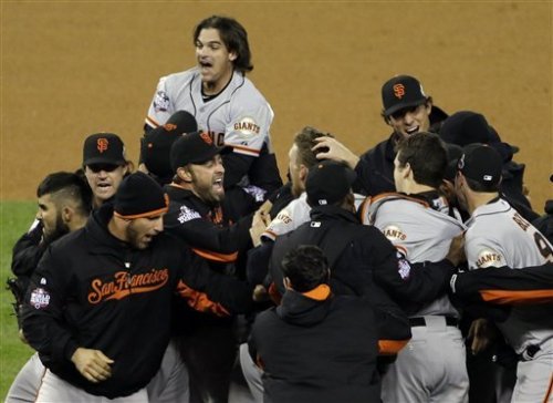 The San Francisco Giants have one their second World Series title since 2010 defeating the Detroit Tigers in 10 innings on Sunday night. Matt Cain and Max Scherzer were both good and the game was tied in the 6th inning 3-3 both starters going 7 innings. Then the bullpens went to work. Jeremy Affeldt struck out the heart of the order in the 8th and he and Sergio Casilla shut down the Tigers in the 9th while Phil Coke held the Giants.