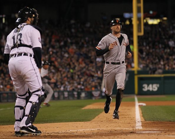 Hunter Pence Scores in Game 3 (SF Chronicle- Lance Iverson)