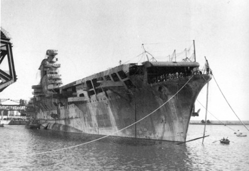 While in Brest Scharnhorst needed repairs to a superheater for her boilers, while Gneisenau was damaged during a British air raid and were unable to deploy with Bismarck and Prinz Eugen for Operation Rheinübung, during which Bismarck sank HMS Hood, but was damaged by a 14” shell from HMS Prince of Wales which cut the fuel line from the ship’s forward fuel tanks. Lütjens decided to cut the mission short and escape to Brest, but was damaged by an aerial torpedo from a Swordfish torpedo bomber flying from HMS Ark Royal which wrecked her steering gear and allowed HMS King George V, HMS Rodney, as well as cruisers and destroyers to catch and sink her on May 27th. Prinz Eugen returned safely to Brest to join the Battlecruisers.
