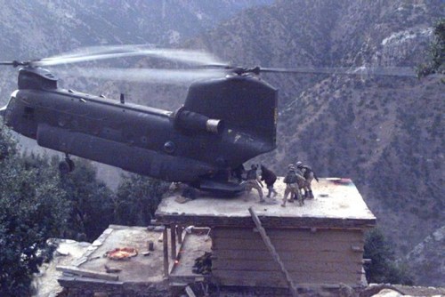 CH-47 Making a Rooftop Pickup in Afghanistan