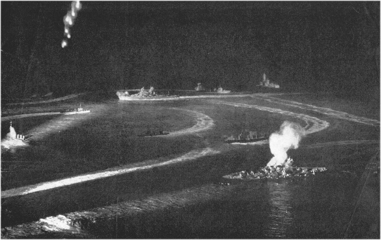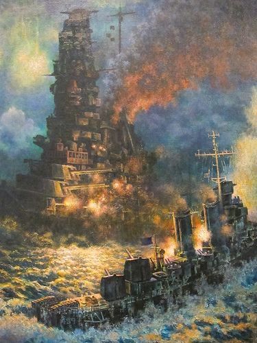 Mogami’s damage control teams isolated the damage and worked the ship up to 12 knots. This was not fast enough for Kurita to make his rendezvous so he left Mikuma and the destroyers to escort Mogami while he steamed ahead with Kumano and Suzuya.