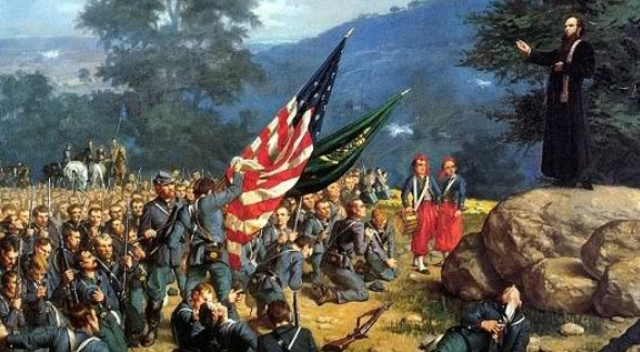 Whenever I go to Gettysburg I stop at the Irish Brigade memorial near the edge of the bloody Wheat Field and speak of its service during the war and the absolution granted to it by its chaplain, Father Corby before it went into battle that hot summer afternoon of July 2nd 1863. Likewise I tell the story of the young Colonel Paddy O’Rorke, the first Irish Catholic to graduate from West Point who died leading his regiment at Little Round Top, not far from where his kinsmen were fighting at the Wheat Field.