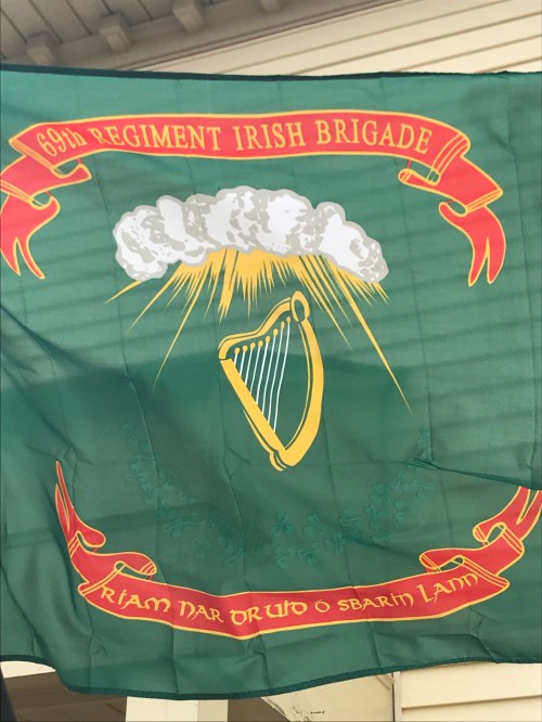 As a historian, I want to do that because I wonder if any of my Irish-American ancestors fought with any of the Civil War Irish regiments. I have always been particularly fond of the Irish Brigade of the Army of the Potomac and many times I fly the flag of the 69th New York Volunteer Infantry, also known as the 1stRegiment of the Irish Brigade alongside my 34 Star Circle Union Flag outside my house, especially this time of year. The motto of the regiment,  Faugh A Ballagh  (pronounced “Fah-g Ahn BAY-Lick”) means “Clear the way!”
