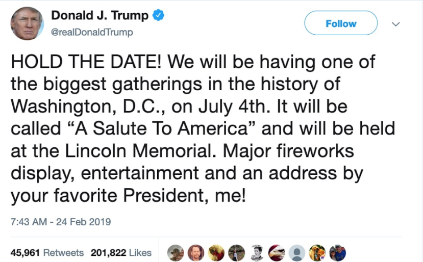 “It Used to Be We Stood For Ideals” Independence Day 2019, the Trump Show
