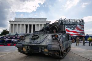 The symbolism of what the President is doing, shrouding the Lincoln Memorial so the statue of Lincoln is not visible from the Capital Mall, spending millions of dollars on military displays and flyovers, and making it a celebration of him is what men who are bent on establishing authoritarian rule have done for millennia. The best seats are reserved for his family, friends, diners, and V.I.P.s something that mocks the words of the ideals of the Declaration of Independence.