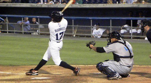 Michael Aubrey’s 2 out Double in the bottom of the 9th nearly cleared the right field fence