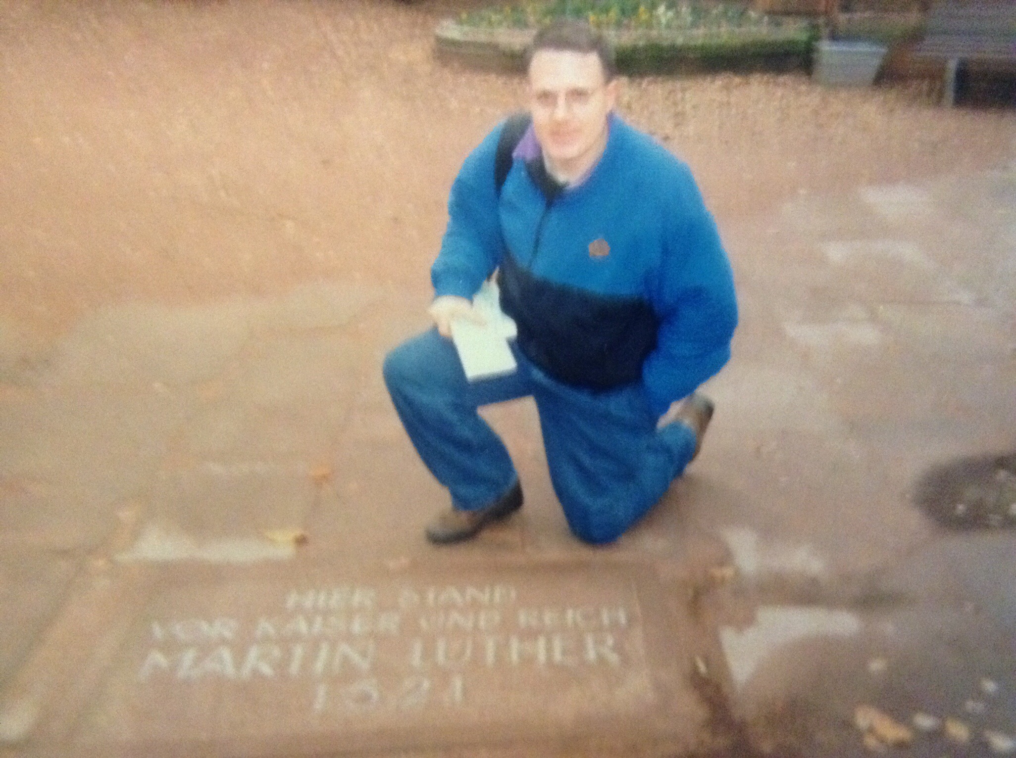 I did a lot of study on the Lutheran Reformation in and after seminary. In 1996 while stationed in Germany as a mobilized Army Reserve Chaplain had the privilege of organizing a series of Reformation tours to Wittenberg, Worms and Heidelberg.  We went to Wittenberg on Reformation day where we attended the Reformationstag service at the Schlosskirche.   I led a walking tour of the town that day.  One of the parishioners from the chapel asked me if I had been toWittenberg before because I seemed like I knew every place in the town.  I had to tell her that I had not been there in person but because of my study had imagined it so many times that I knew every place by heart.  When we went to Worms where Luther on trial before Charles V was told to recant his writings it as the same, except that in Worms the town hall where the Imperial Diet met was destroyed long ago.  However a stone in the pavement marks the spot where Luther concluding his defense before the Emperor Charles V and the assembled Princes and prelates with these immortal words: