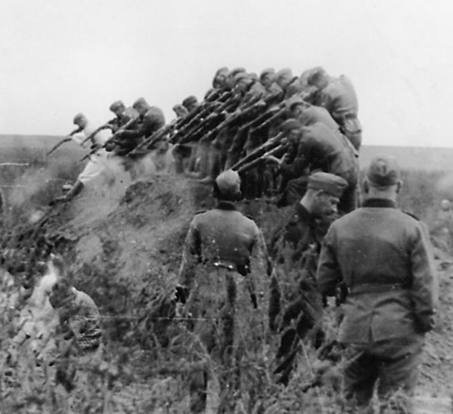 Einsatzgruppe men and Ordungspolizei above and below in action